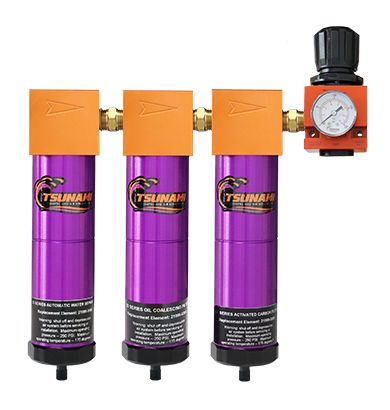50 SCFM, Water Separator, Oil Coalescing filter, Activated Carbon filter, with regulator.