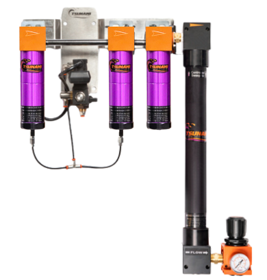 50 SCFM, Water Separator, Oil Coalescing filter, Activated Carbon filter, with regulator and electronic drain valve.